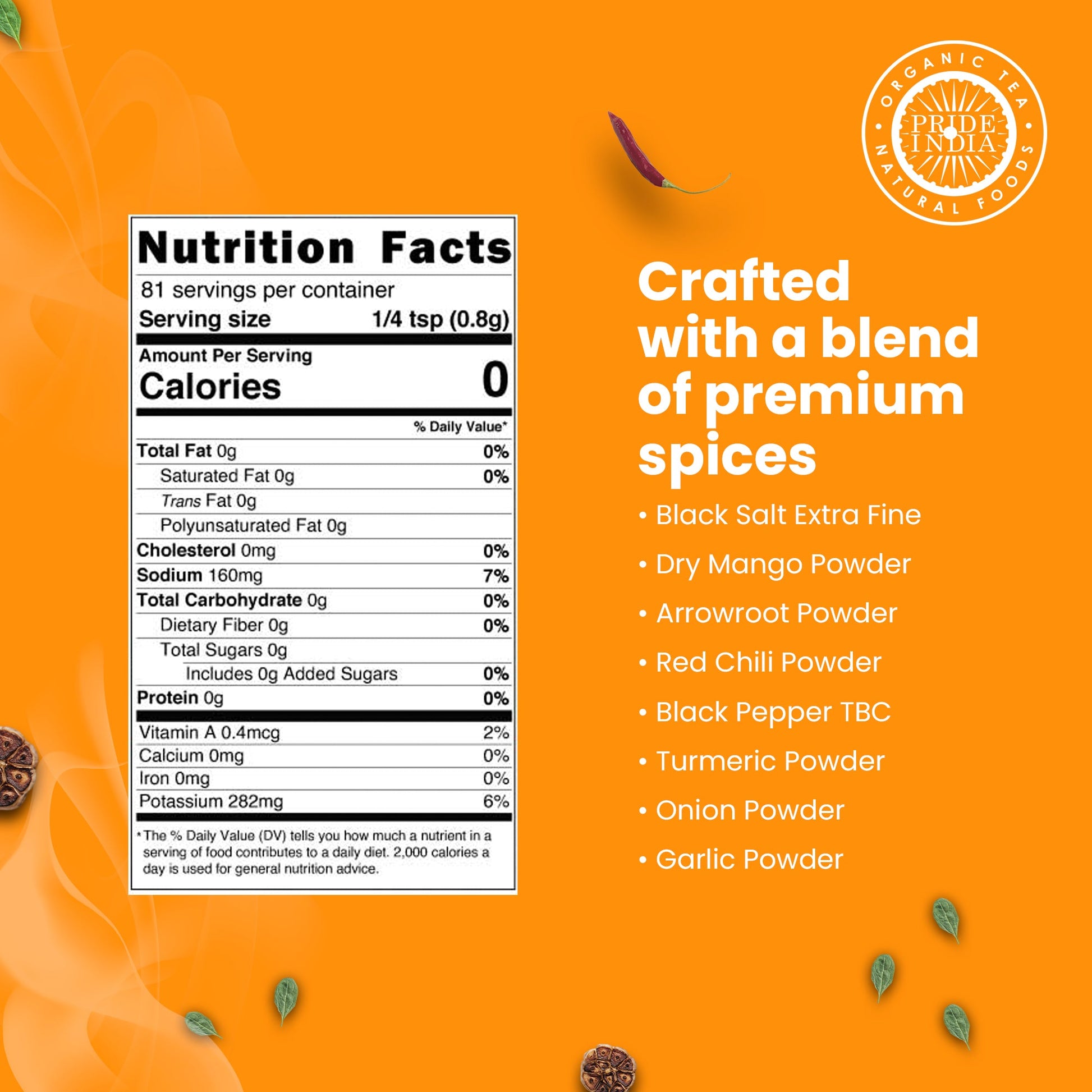 Crafted with precision, this blend boasts Black Salt, Dry Mango Powder, Arrowroot Powder, Red Chili Powder, Black Pepper, Turmeric Powder, Onion Powder, and Garlic Powder. As you savor your eggs, you'll encounter a tantalizing fusion of flavors that's both tangy and subtly spicy. The dry mango lends a zesty kick, while the arrowroot adds a delightful twist. With every bite, this seasoning creates a culinary masterpiece, elevating your eggs to a level of taste that's truly extraordinary.